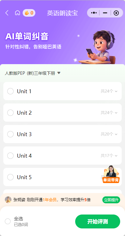 这就是AI技术能帮上忙的地方。英语朗读宝的跟读打分功能,读完一句立刻给反馈——哪个音发错了、哪个重音偏了,孩子自己就能看懂。这种「即时反馈」比家长在旁边喊「不对,重读」有效一百倍——因为它是具体的、客观的、不带情绪的。